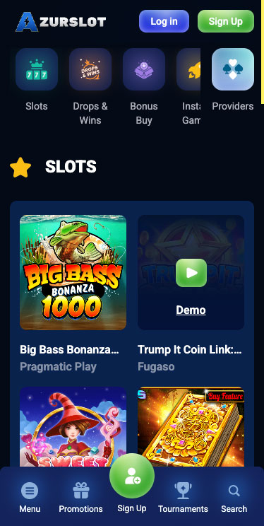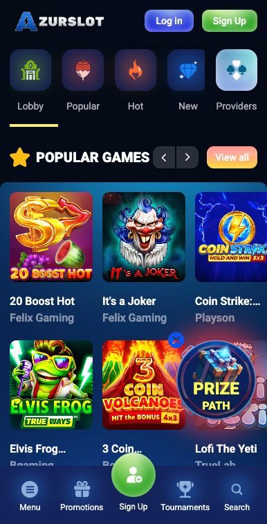 AzurSlot Casino works well on mobile browsers, keeping the design user-friendly and perfectly suited to thumb navigation. The same account features, bonuses, and the ”Coins/Achievements/Tournaments” system are, of course, all available to mobile players. Yes, the casino didn’t go the extra mile to provide a native app, but we will show how to add a shortcut to your Android and iOS home screens. Let’s do it.