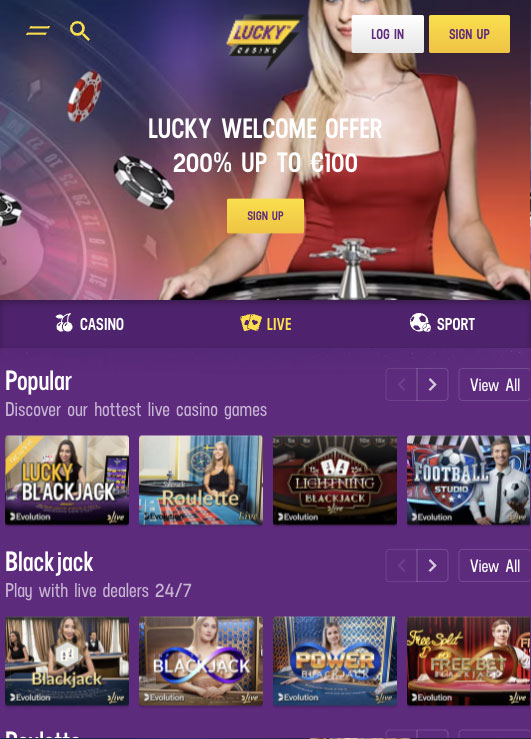 LuckyCasino is an extremely popular mobile venue that is mainly geared towards European and Scandinavian players. Among Sweden’s top 5 brands for 2021, its success is mainly thanks to the experienced provider Glintor. Created by a number of iGaming veterans, the company knows quality and how to create an excellent casino offering. Starting from the most essential thing – the gaming platform, it is the latest gen and works perfectly across a wide range of mobile devices. No matter if you are on an Android or iPhone, you won’t even have to download an app in order to enjoy the mobile casino to its fullest. All 1,400 real money casino games the brand has to offer will be available to you without exceptions. The full collection of slots, incl. The game categories, the progressive titles as well as the live games and even the sportsbook are reworked for mobile devices.